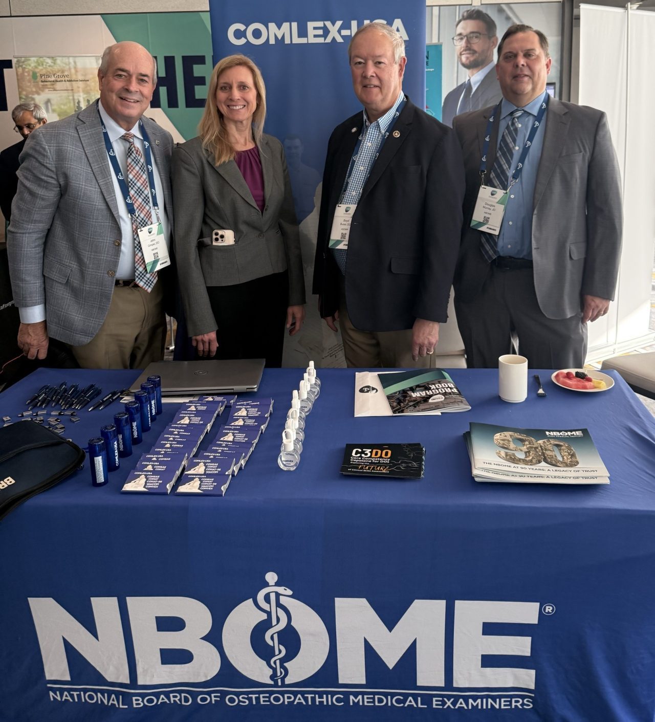 The NBOME also exhibits regularly at meetings and conferences that offer the opportunity to connect with representatives from state medical boards. In April, Murray attended the 2025 Administrators in Medicine Annual Meeting and the Federation of State Medical Boards’ (FSMB) 2025 Annual Meeting. Gimpel and Kemper also attended the FSMB meeting and presented updates on COMLEX-USA and the NBOME.
